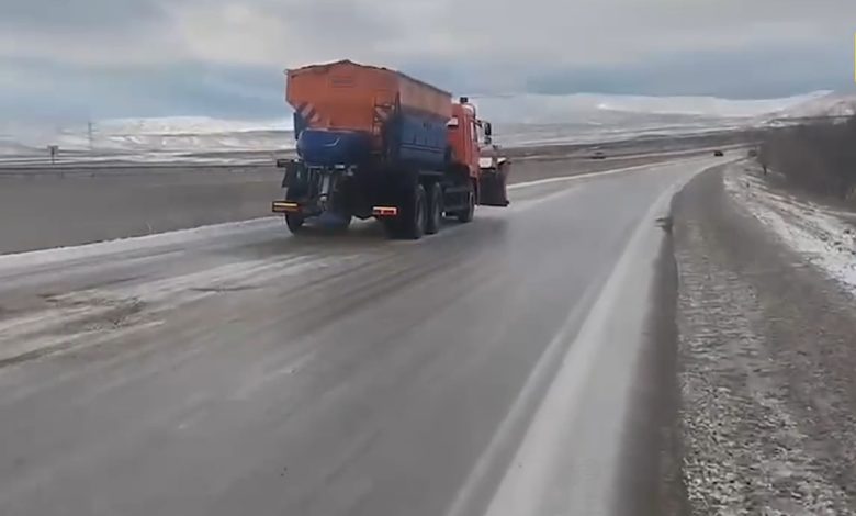 Məlumata görə, qısa müddət ərzində Azərbaycan Avtomobil Yolları Dövlət Agentliyinin (AAYDA) 4 nömrəli Magistral Yolların İstismarı MMC-nin canlı qüvvəsi və xüsusi texnikası əraziyə cəlb olunub, buzlaşan hissələr təmizlənib, yollara duz-qum qarışığı səpilib.