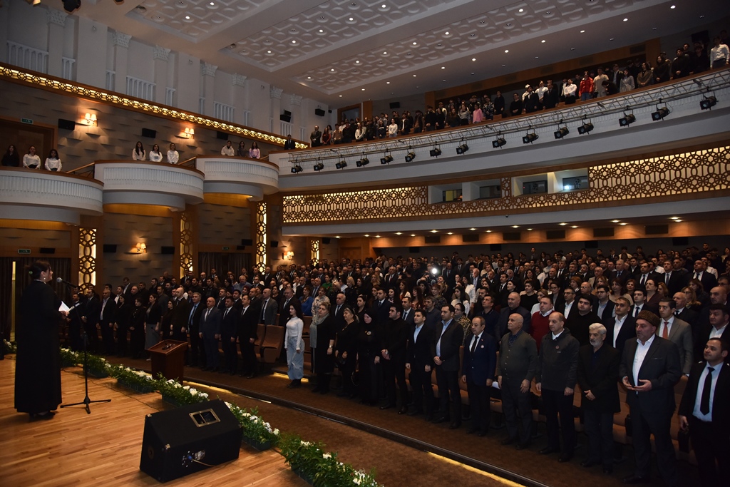 Əvvəlcə Ulu öndər Heydər Əliyevin və Azərbaycanın ərazi bütövlüyü uğrunda canlarından keçən şəhidlərin əziz xatirəsi bir dəqiqəlik sükutla yad edildikdən sonra Azərbaycan Respublikasının Dövlət Himni səsləndirilib.