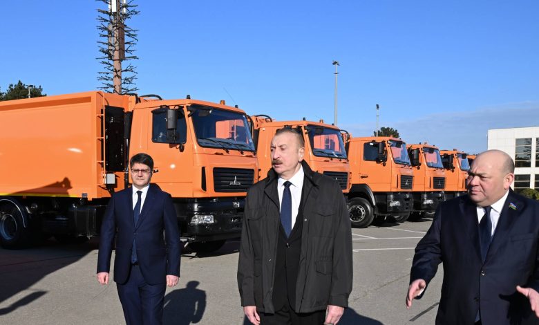 Martın 2-də Azərbaycan Respublikasının Prezidenti İlham Əliyev Bakı Ekspo Mərkəzinin həyətində məişət tullantıları daşıyan texnikalarla tanış olub.